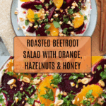 Keywords: roasted beetroot salad, beetroot recipe, baked beets, healthy salad, Mediterranean salad, Greek yoghurt salad, honey and hazelnuts, orange beet salad