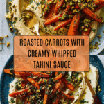 Keywords: roasted carrots, whipped tahini, tahini sauce, Mediterranean side dish, healthy carrot recipe, orange juice dressing, pistachio topping