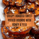 Keywords: roasted sweet potatoes, sweet potato rounds, honey and feta, roasted vegetables, healthy side dish, easy vegetarian recipe