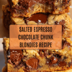 Keywords: blondies, espresso blondies, chocolate chunk blondies, salted blondies, baked dessert, coffee infused dessert