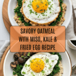 This Savory Oatmeal Recipe with Miso and Fried Egg is a comforting and nutritious twist on traditional oatmeal, combining the umami depth of white miso paste and Parmesan cheese with the freshness of kale. Topped with a perfectly cooked fried egg and garnished with chives, this dish offers a savory, satisfying breakfast or light meal option that’s packed with flavor and protein.