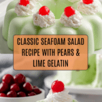 Seafoam Salad is a light and refreshing dessert that combines the sweet tang of pears with the creamy texture of gelatin and whipped cream. It’s a nostalgic dish perfect for gatherings or a simple, elegant treat any time.