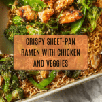 Keywords: sheet-pan ramen, crispy ramen noodles, chicken ramen recipe, broiled vegetables, easy dinner, one-pan meal, sesame soy sauce, quick ramen dish