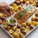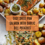 This Sheet Pan Salmon with Dill Potatoes is a simple, flavorful meal perfect for busy weeknights. Roasting everything together on one pan makes cleanup easy while delivering a tender, flaky salmon paired with golden, herb-infused potatoes.
