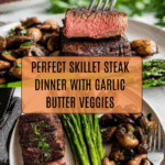 This skillet steak dinner is a simple yet elegant meal that combines perfectly seared New York steaks with tender asparagus and mushrooms. It’s an easy way to enjoy a restaurant-quality steakhouse experience right at home.