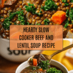 This hearty Slow Cooker Beef and Lentil Soup combines tender beef stew meat with nutritious lentils and a medley of fresh vegetables, herbs, and spices. Cooked low and slow for rich flavor development, this comforting soup is perfect for a wholesome meal, packed with protein, fiber, and vibrant greens like kale.