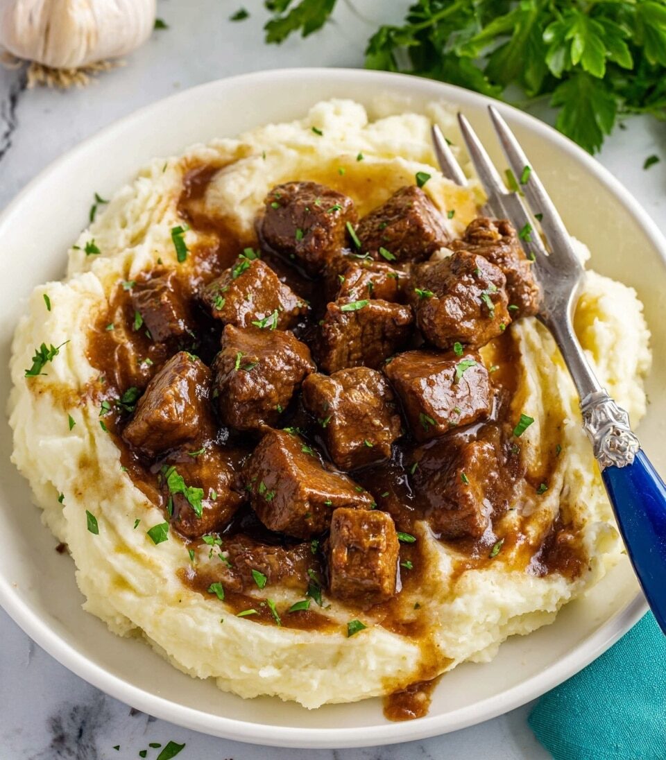 - Step 6: Serve the steak bites hot alongside mashed potatoes, egg noodles, or rice.