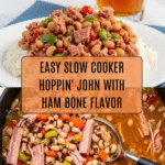 Keywords: Hoppin’ John, black eyed peas, slow cooker, Creole seasoning, Southern recipe, ham bone, comfort food