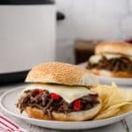 Keywords: Italian beef, slow cooker beef sandwich, shredded beef sandwich, pepperoncini beef, hoagie sandwich, easy slow cooker recipe