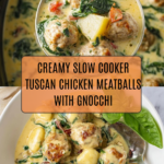 These Slow Cooker Tuscan Chicken Meatballs with Gnocchi offer a comforting and flavorful meal featuring tender chicken meatballs simmered in a creamy Tuscan-inspired sauce loaded with sun-dried tomatoes and spinach. Perfectly cooked gnocchi is added at the end for a hearty, one-pot dinner that’s easy to prepare and full of rich Italian flavors.