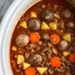 This Slow Cooker Witches Brew Stew is a hearty and festive Halloween-themed stew featuring ground beef, spicy breakfast sausage, autumn vegetables shaped like pumpkins, and spooky mushroom ‘skull faces.’ Slow-cooked to perfection, this stew combines the rich flavors of beef broth, condensed soups, and Italian herbs for a comforting and fun meal.