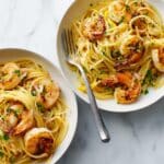 A bright and elegant Spaghetti al Limone with succulent sautéed shrimp, featuring a zesty lemon-tarragon sauce enriched with Parmesan and butter. Perfectly balanced flavors come together in a quick stovetop pasta dish that is both refreshing and comforting.