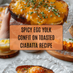 This Spicy Egg Yolk Confit recipe offers a rich, creamy, and flavorful way to enjoy egg yolks slow-cooked in olive oil and spicy salsa macha. The yolks develop a luscious, spreadable texture perfect for serving on toasted ciabatta, garnished with freshly grated Parmesan and chopped chives. A gourmet appetizer or snack with a spicy kick and luxurious mouthfeel.