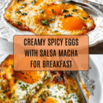 Keywords: spicy eggs, creamy eggs, salsa macha eggs, breakfast recipe, brunch, quick eggs