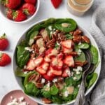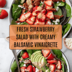 This fresh and vibrant Strawberry Salad with Balsamic Vinaigrette combines tender baby spinach, juicy sliced strawberries, creamy avocado, tangy goat cheese crumbles, and crunchy toasted pecans. Finished with a drizzle of homemade creamy balsamic vinaigrette, this salad is a perfect balance of flavors and textures, ideal for a light lunch, a side dish, or a refreshing starter.