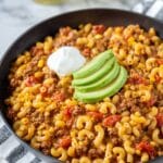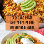 Keywords: taco pasta, skillet meal, easy dinner, ground beef recipe, Tex-Mex pasta