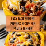 Keywords: taco stuffed peppers, stuffed bell peppers, Mexican stuffed peppers, ground beef stuffed peppers, easy dinner, baked stuffed peppers