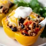 Keywords: taco stuffed peppers, stuffed bell peppers, Mexican stuffed peppers, ground beef stuffed peppers, easy dinner, baked stuffed peppers