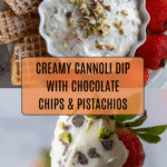 Keywords: cannoli dip, ricotta dip, Italian dessert, easy dessert recipe, no bake dip, creamy dessert, chocolate chip dip, pistachio dessert