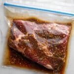 - Marinate the Tri-Tip: Place the tri-tip steak into a gallon-sized sealable plastic bag and pour the marinade over the meat. Seal the bag tightly, ensuring the marinade coats the steak evenly. Refrigerate and marinate for at least 1 hour, or up to 24 hours for maximum flavor and tenderness.