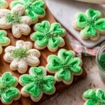 Keywords: St. Patrick’s Day cookies, vanilla bean cookies, sugar cookies, buttercream frosting, festive cookies, holiday baking