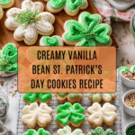 Celebrate St. Patrick’s Day with these delightful Vanilla Bean St. Patrick’s Day Cookies. Soft, buttery sugar cookies infused with real vanilla bean seeds and topped with a creamy vanilla bean buttercream frosting. Perfectly tender with a smooth, sweet finish, these festive cookies can be shaped and decorated to bring holiday cheer to your dessert table.