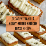 This Vanilla Honey Butter Toast recipe transforms thick slices of brioche into a decadent, golden-baked treat topped with a creamy ricotta and cream cheese blend, drizzled with honey and garnished with fragrant rosemary and fleur de sel. Perfect for a luxurious breakfast or a sweet snack, the toast combines the rich flavors of honey, brown sugar, and vanilla with a hint of black pepper for a unique twist.