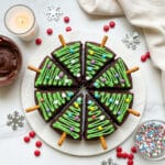 - Decorate with your choice of sprinkles for a festive touch and pretzel sticks for an authentic ‘tree trunk’.