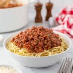 - Step 11: Serve the sauce over spaghetti or pasta of choice and top with parmesan cheese if desired.