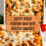 Keywords: Veggie Rigatoni, Baked Pasta, Vegetarian Pasta, Roasted Tomato Pasta, Spinach Pasta Bake, Easy Italian Dinner, Cheesy Rigatoni