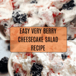 This Very Berry Cheesecake Salad is a delightful and refreshing dessert salad combining creamy sweetened cream cheese, fluffy Cool Whip, and a medley of fresh berries. It’s perfect for summertime gatherings or as a light, fruity treat that showcases the vibrant flavors of strawberries, blackberries, blueberries, and raspberries all mixed into a smooth, cheesecake-inspired base.
