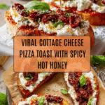Keywords: cottage cheese pizza toast, viral toast recipe, hot honey pizza toast, sourdough pizza toast, healthy snack, quick pizza toast
