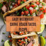 Delicious and easy Weeknight Carne Asada Tacos featuring marinated flank or skirt steak grilled to perfection, served with fresh cilantro, diced onion, and optional pico de gallo on warm corn tortillas. Perfect for quick dinners with vibrant Mexican flavors.