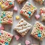 Keywords: Lucky Charms treats, white chocolate cereal bars, marshmallow cereal treats, no-bake dessert, kid-friendly treats