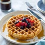 Store leftover waffles in an airtight container in the refrigerator for up to 2 days. To reheat, toast them in a toaster or warm in a 350°F (175°C) oven for 5–7 minutes to retain crispness.